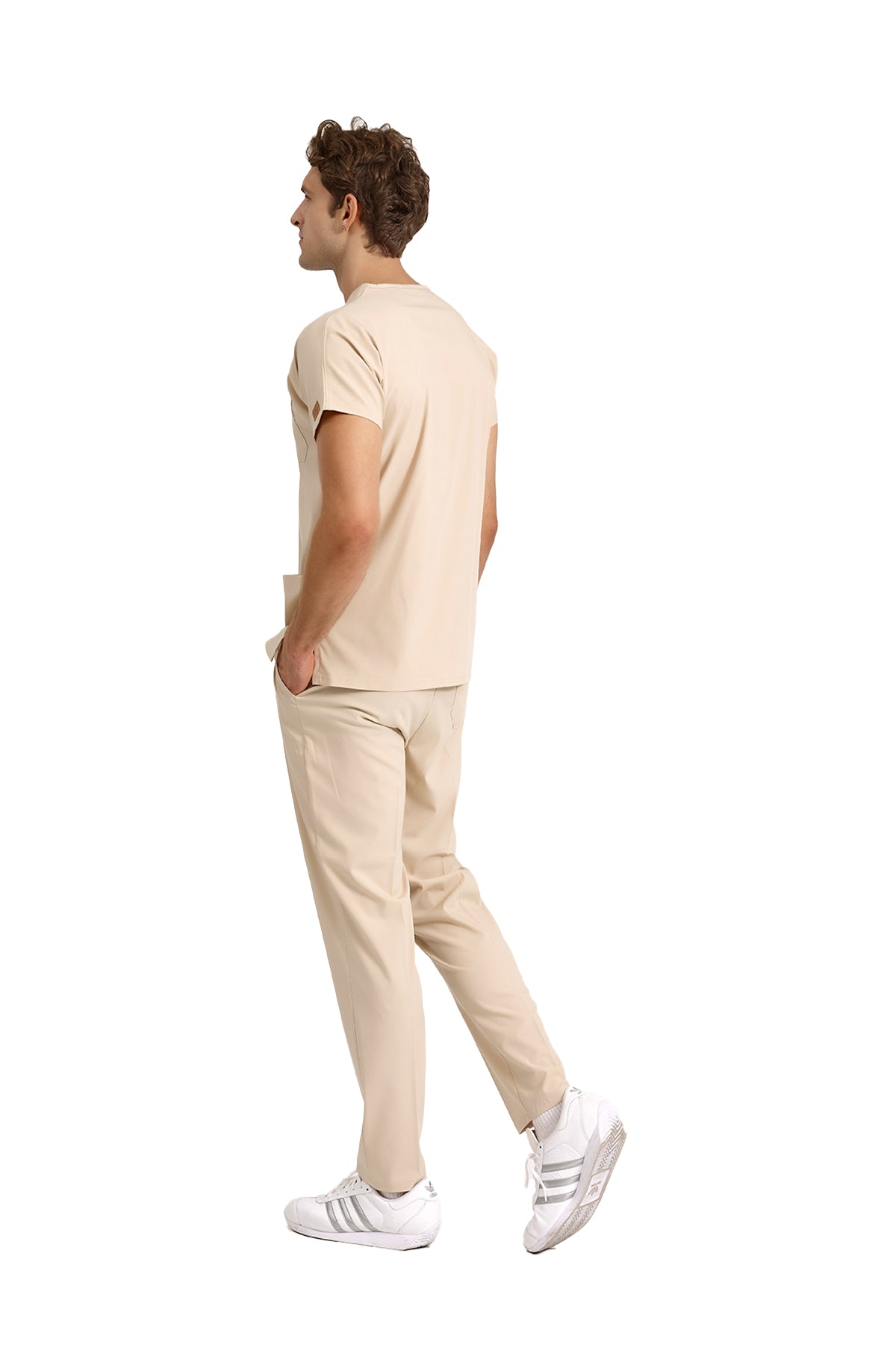 Bej Likralı Doktor Ve Hemşire Forması Unisex Cerrahi Takım