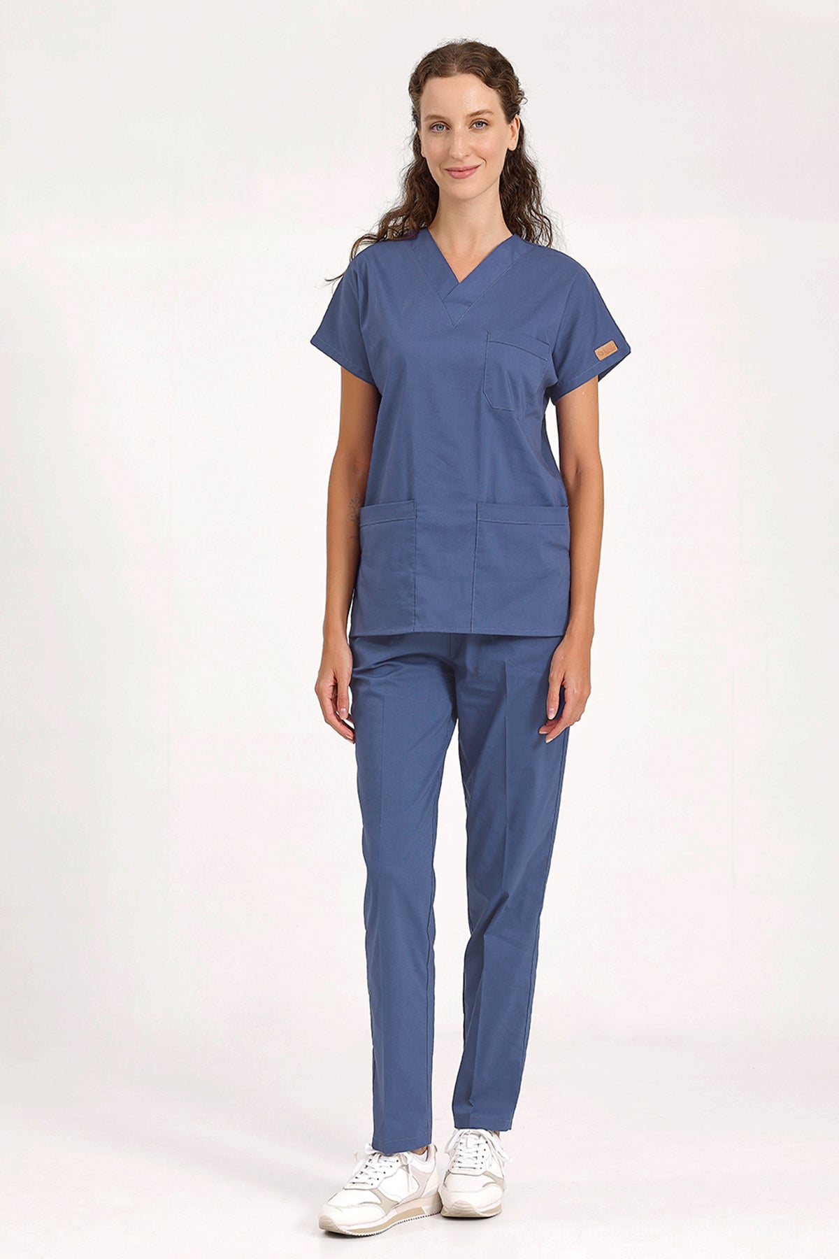 Fırtına Mavi Likralı Doktor Ve Hemşire Forması Unisex Cerrahi Takım