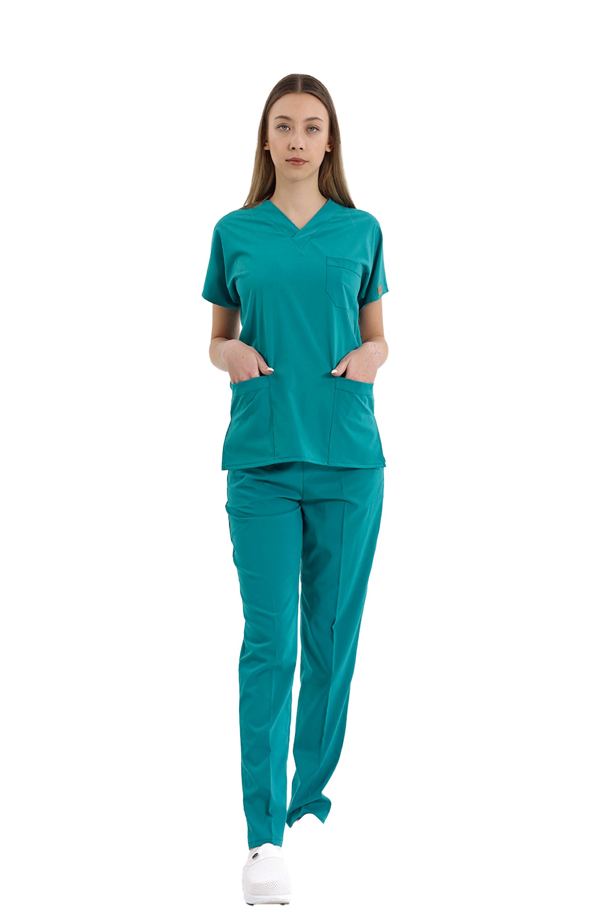Avcı Yeşili Likralı Doktor Ve Hemşire Forması Unisex Cerrahi Takım