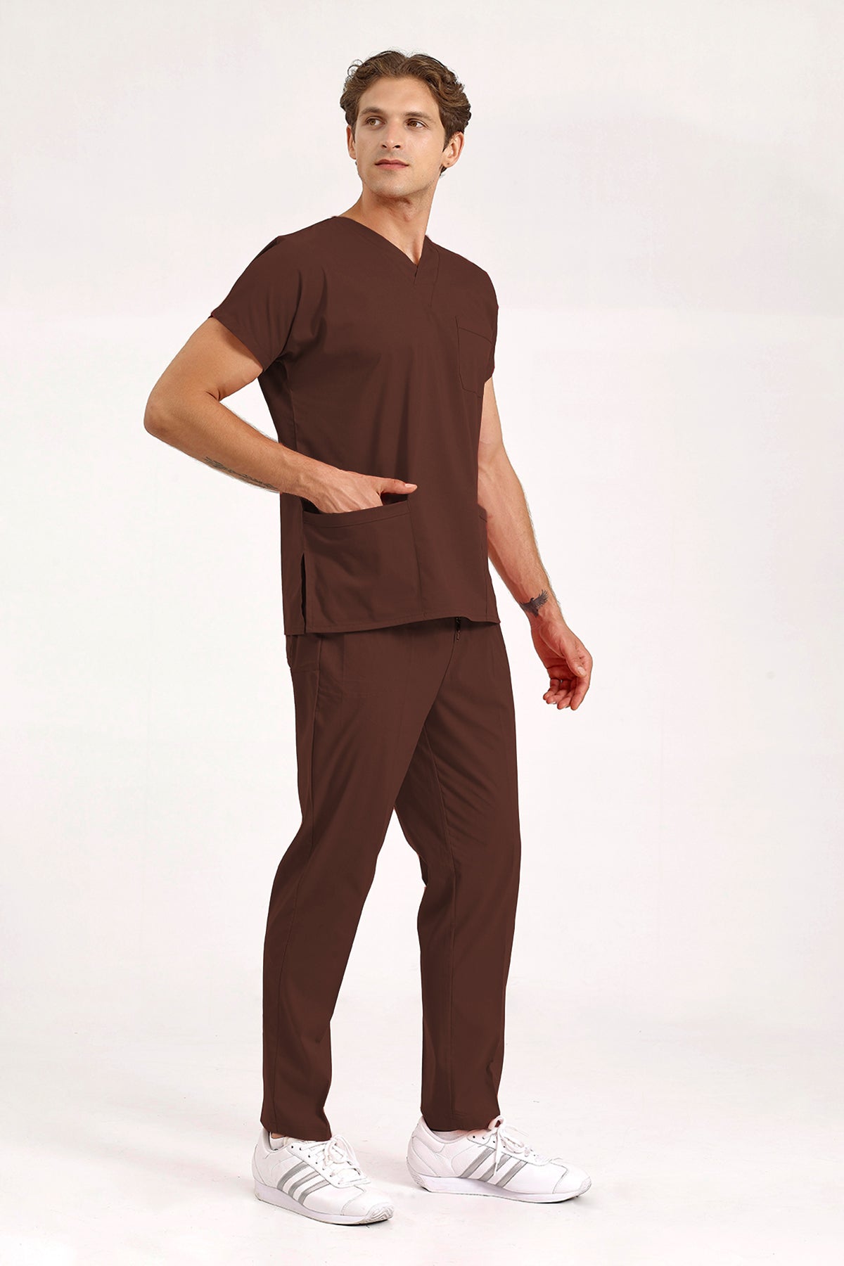 Kakao Likralı Doktor Ve Hemşire Forması Unisex Cerrahi Takım