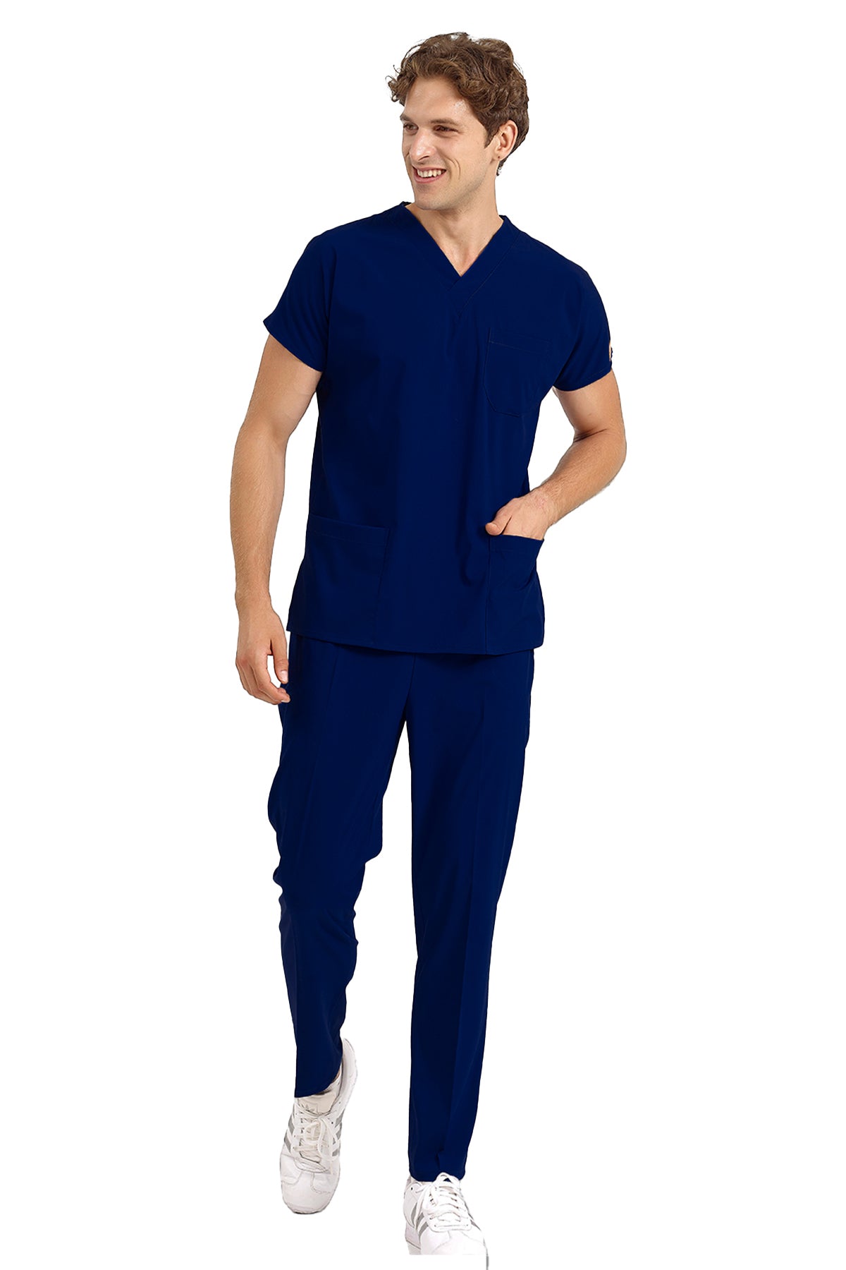 Saks Mavi Likralı Doktor Ve Hemşire Forması Unisex Cerrahi Takım