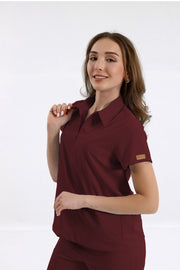 MEDİNİLLA Tek Üst Yandan Cepli Gizli Fermuar Polo Yaka Doktor/Hemşire Cerrahi Forma Bordo