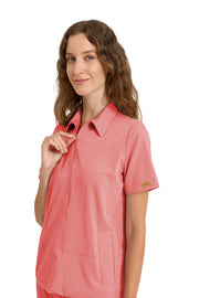 MEDİNİLLA Tek Üst Yandan Cepli Gizli Fermuar Polo Yaka Doktor/Hemşire Cerrahi Forma Leylak
