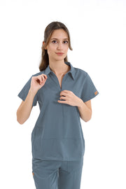 MEDİMEN Tek Üst Reglan Kol Gizli Fermuarlı Gömlek Yaka Doktor/Hemşire Cerrahi Forması Gri