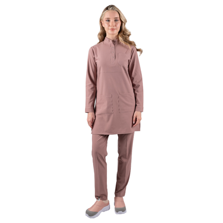 Tesettür Panda Flex Likralı Cerrahi Takım Koyu Pudra